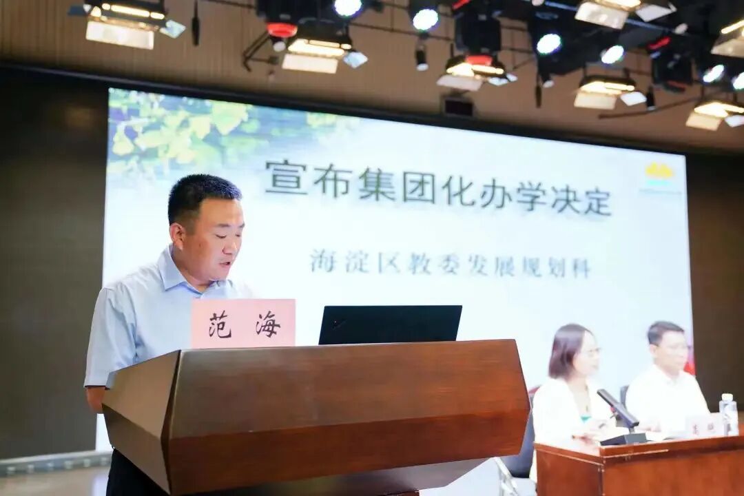 6月7日,首都师范大学实验小学教育集团成立暨揭牌加盟仪式举办。会上,海淀区教委发展规划科科长范海宣读了关于成立首都师范大学实验小学教育集团的决定。