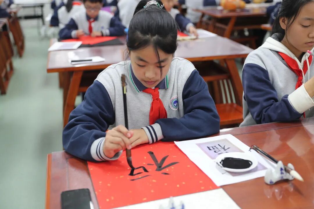 学校在周一到周五都安排了学生自主选修课程,开展学科实践活动,包括国画、葫芦工艺、街舞、红十字、柔道、足球、辩论小组、中文戏剧、仪仗队、未来创客、行进管乐等54门课程,涵盖了学生核心素养发展的各个层面,满足学生对动态社团的需求与期待,做到“人人有项目”“人人有特长”,为学生全面发展赋能。特别是“有趣的葫芦”校本课程,依托劳动基地建设,从春种到秋收,让学生体验到了劳动的快乐。