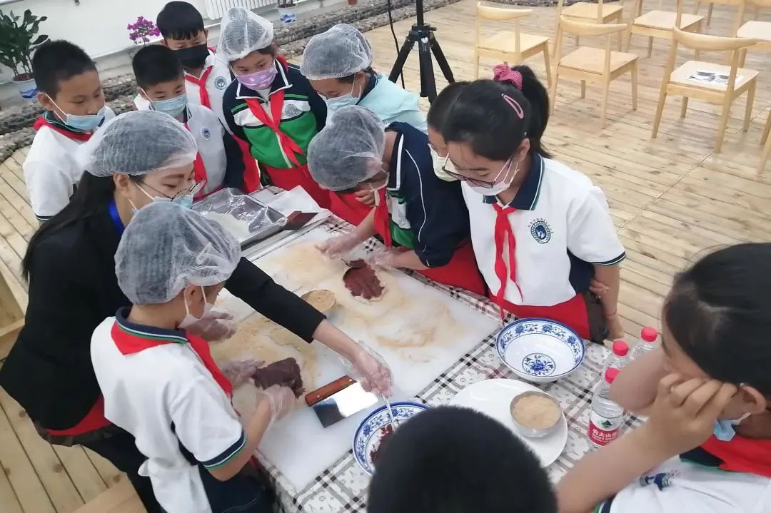 课堂上,几十个身高不一、头戴厨师帽、身着小围裙的同学在食堂阿姨的指导下,分工有序地学习着各类食品的制作方法。品尝着自己亲手制作的甜品,大家获得了满满的成就感。