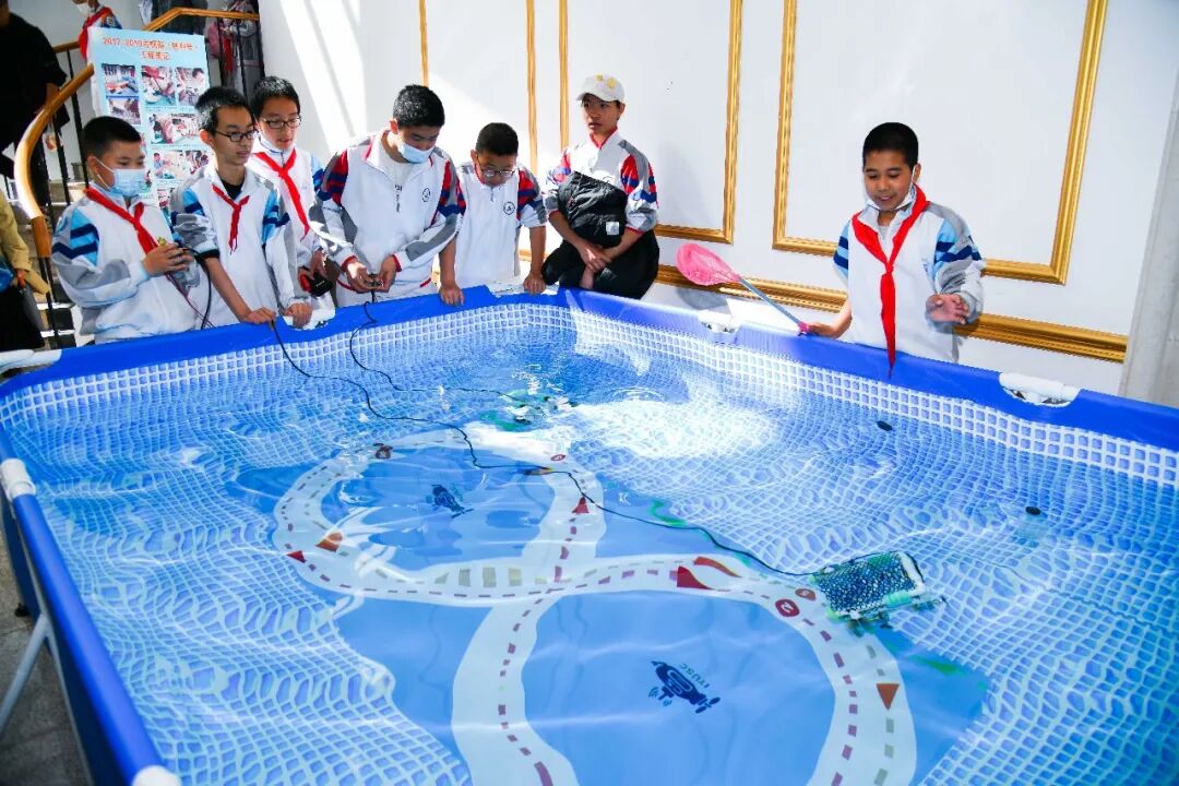 4月16日,八一学校在校内举行“逐梦深蓝”国防科技教育主题活动暨中学生“无人艇”研制、应用及课程开发工程启动仪式。水下绕八字行驶、穿越门洞套取在水面上的乒乓球、捞取垃圾......来自学校海鲈鱼水下机器人社团、VEX-IQ机器人社团的演示表演,展示了八一学校师生在逐梦深蓝、探索无人艇方面的前驱性实践活动。快一起到现场看看吧~