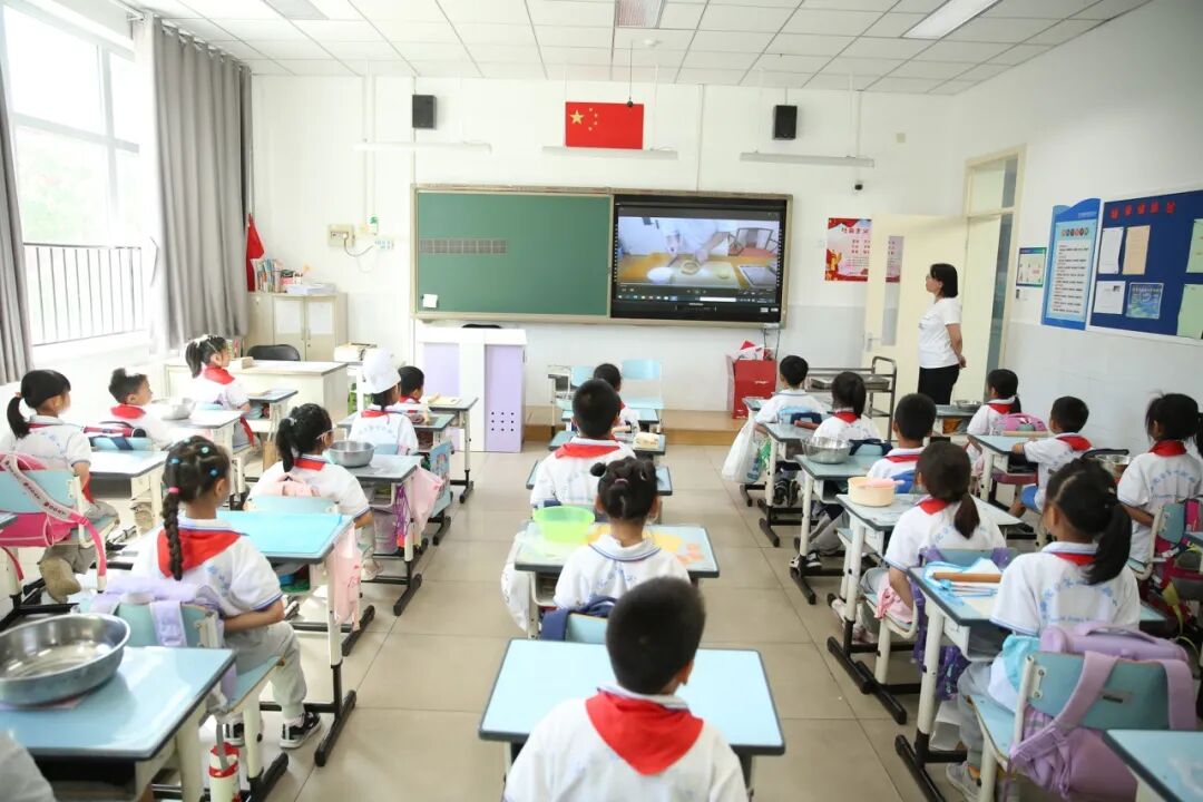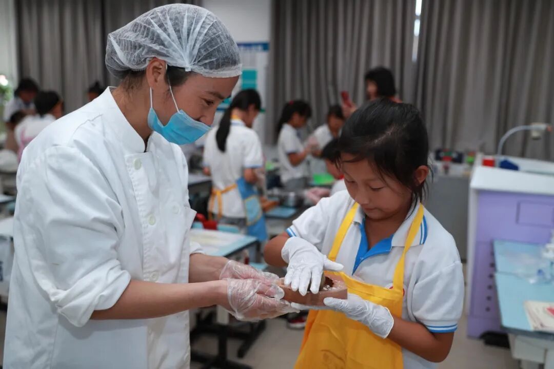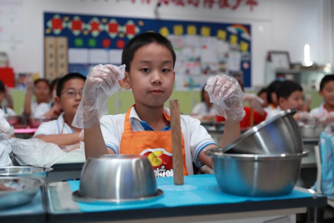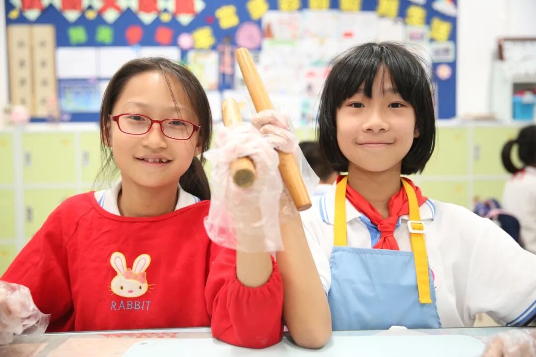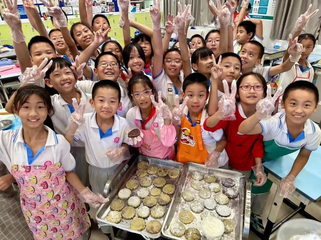 2023年9月22日下午,海淀区第四实验小学的同学们就在学校面点师和老师的指导下,亲手学做了香甜的月饼。