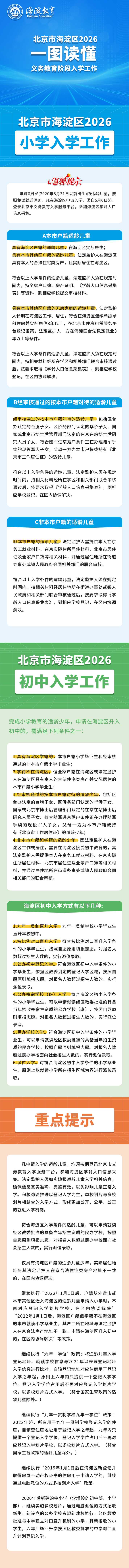 一图读懂 | 海淀区2026年义务教育阶段入学工作
